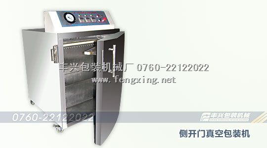 6090 side open (non-standard) door vacuum packaging machine (side door vacuum packaging machine), which is a dedicated to 25 kg of product packaging vacuum packaging requirements and design of vacuum chamber for the erection of the structure, the packaging will be packed goods package bag moved into the packing room, at the bottom of the bag in the following, the bag mouth upward, by an elastic structure fixed good bag to prevent loose or fold. Shut the door, automatic start pumping action, until the vacuum packaging, vacuum chamber door release, directly open the door and dragged out of the bag vacuum packaging materials and packaging are completed.