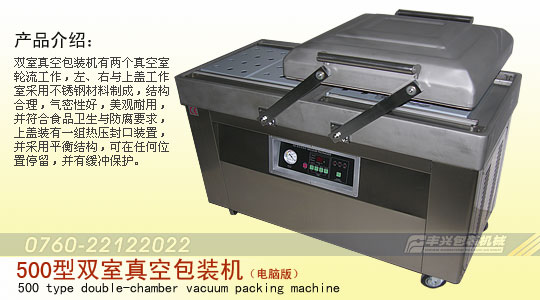 電腦版控制500型雙室真空包裝機|真空封口機|抽真空機|雞翅膀真空包裝機器|電路板真空包裝機|鏡片真空包裝機