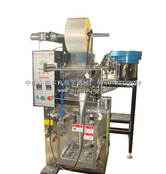 用于電器、燈飾、五金裝飾產品的附屬安裝螺絲、螺母、電子元件、燈飾配件、小塑膠件等,單種產品在一個袋子里面需要實現的一個或多個的自動包裝。