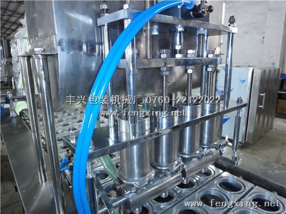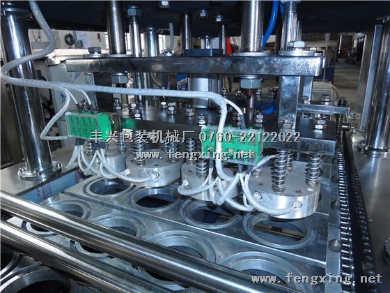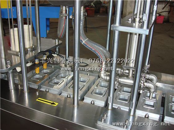 本機具有自動膏體、液體灌裝,自動溫控封口切邊,廢料收卷,全機采用優質材料制造,傳動部件及電氣元件均為國內名牌廠家提供,適合各種規格塑盒(杯),經自動定量灌裝后,進行殺菌、打日期、自動熱合封蓋、剪切、修整、落杯、廢料收卷等功能。