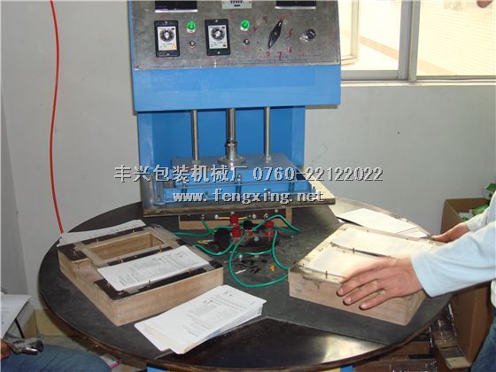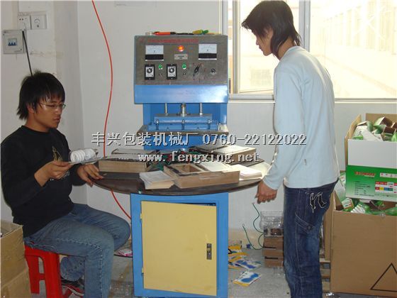 FX-50型轉盤式吸塑包裝機,在圓形電木轉盤上具有三個工位,分別完成放料、封合、取料的工序;