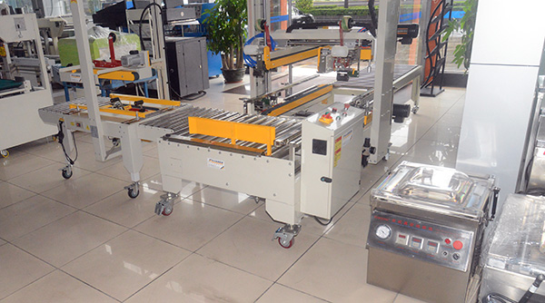 半自動(dòng)封箱機(jī)+四角邊自動(dòng)封箱機(jī)+無動(dòng)力滾筒輸送機(jī)整套機(jī)組介紹: